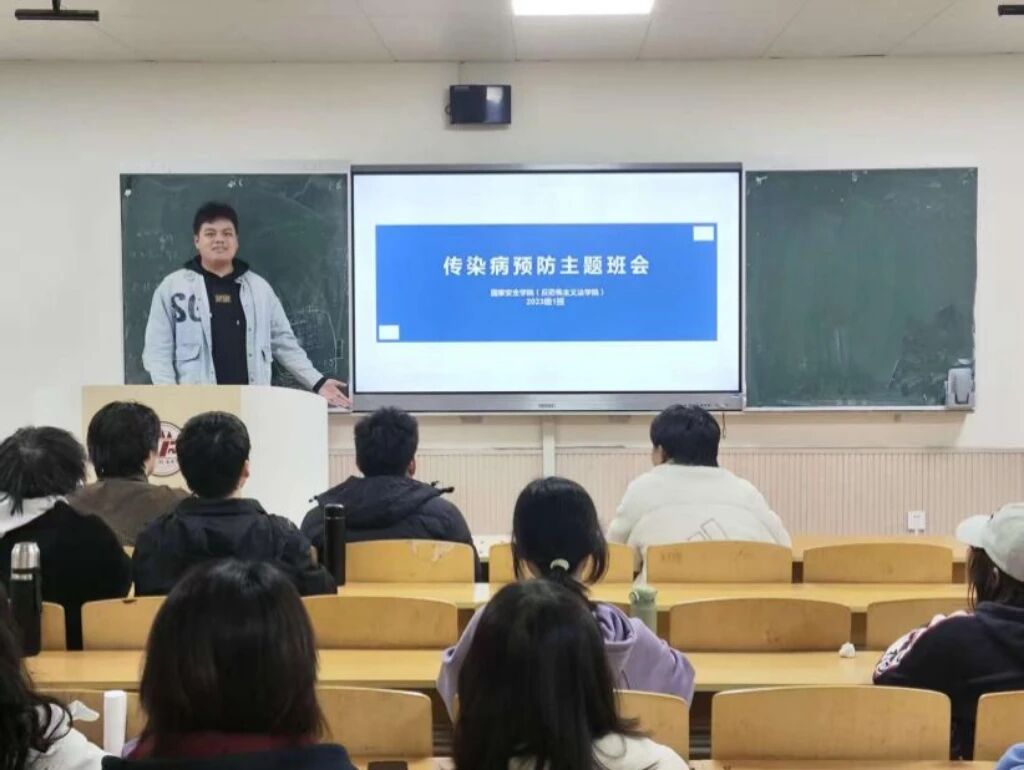 为增强同学们对传染病的预防意识,筑牢校园健康防线,国家安全学院(反恐怖主义法学院)2023级1班召开传染病预防主题班会。本次班会由班长丁盟同学主讲,班级全体同学共同参与。